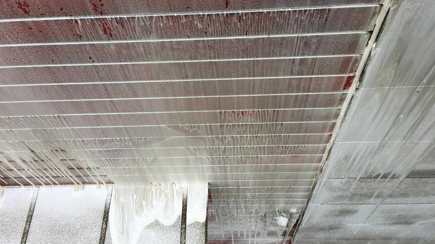 In non-contact washing, the key to success is a correctly chosen washing product, which is applied to the surface (in the form of liquid or active foam) before the pressure washing itself. It must sufficiently break the dirt, but under no circumstances must it damage anything, which means that it must be sufficiently gentle but highly effective too. Especially in the construction industry, a number of delicate materials as parts of the constructions can be easily destroyed by an inappropriate product. It is therefore important that the product washes the dirt and does not damage its surfaces. The use of appropriate chemicals also significantly shortens the cleaning time.
